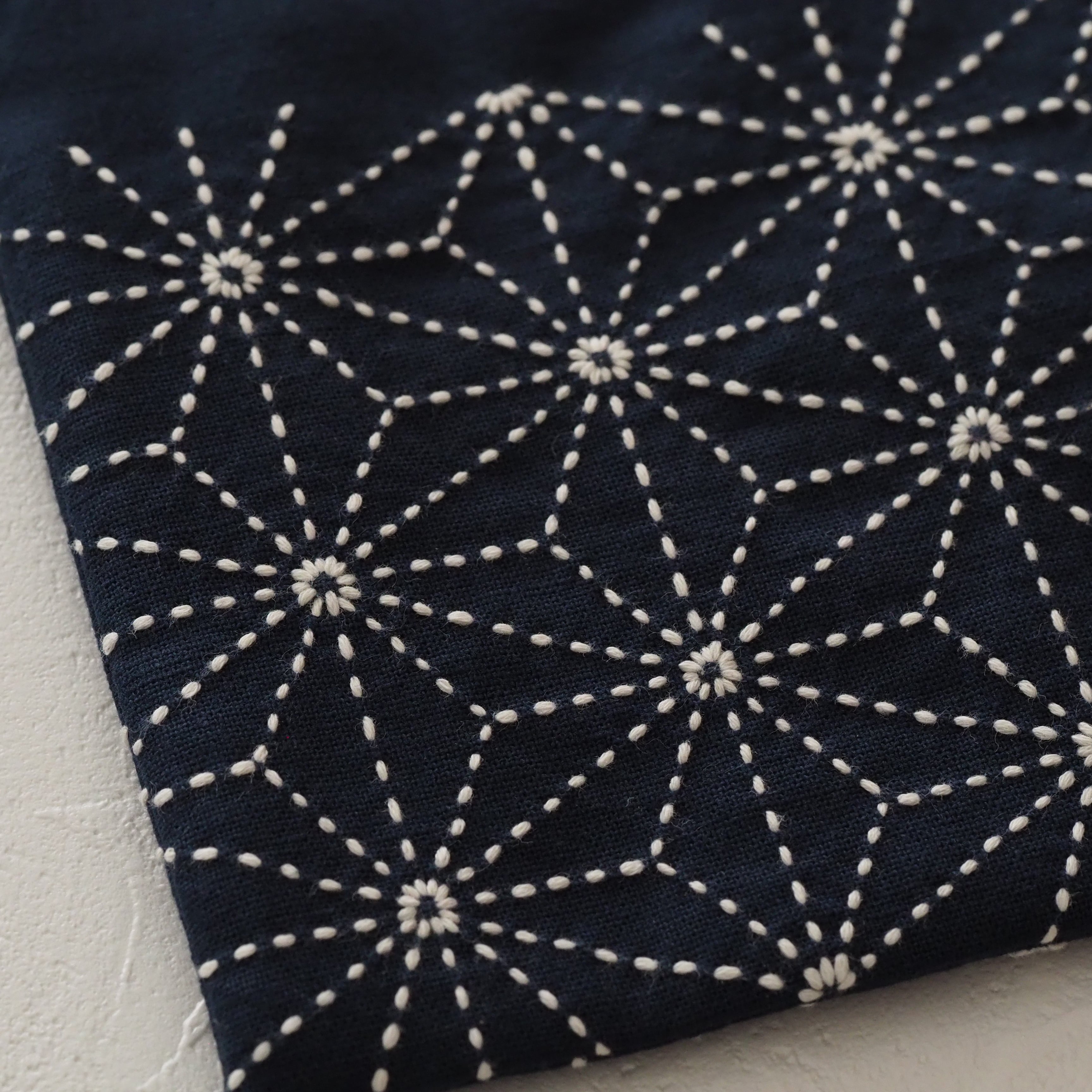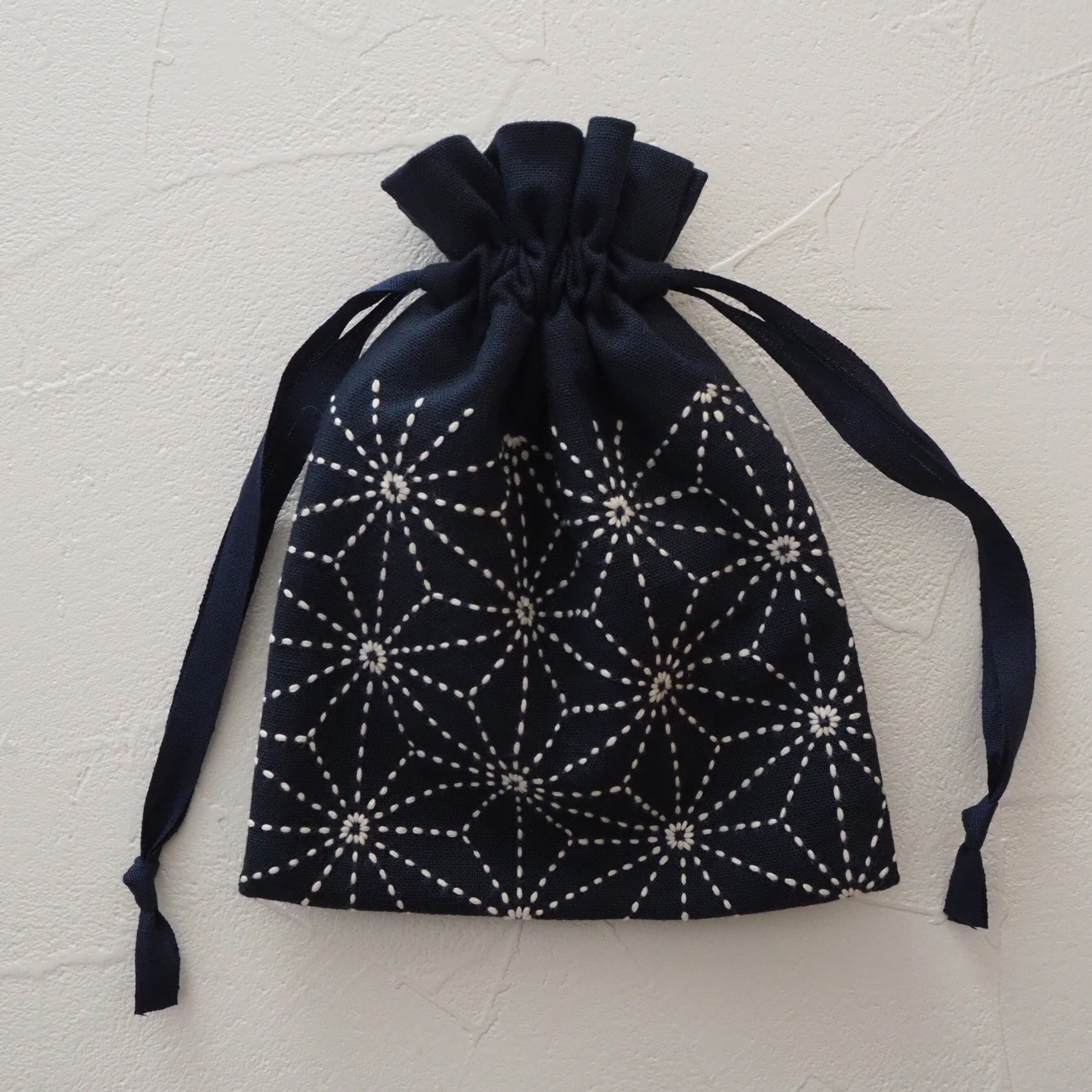 刺し子の巾着(麻の葉/紺)