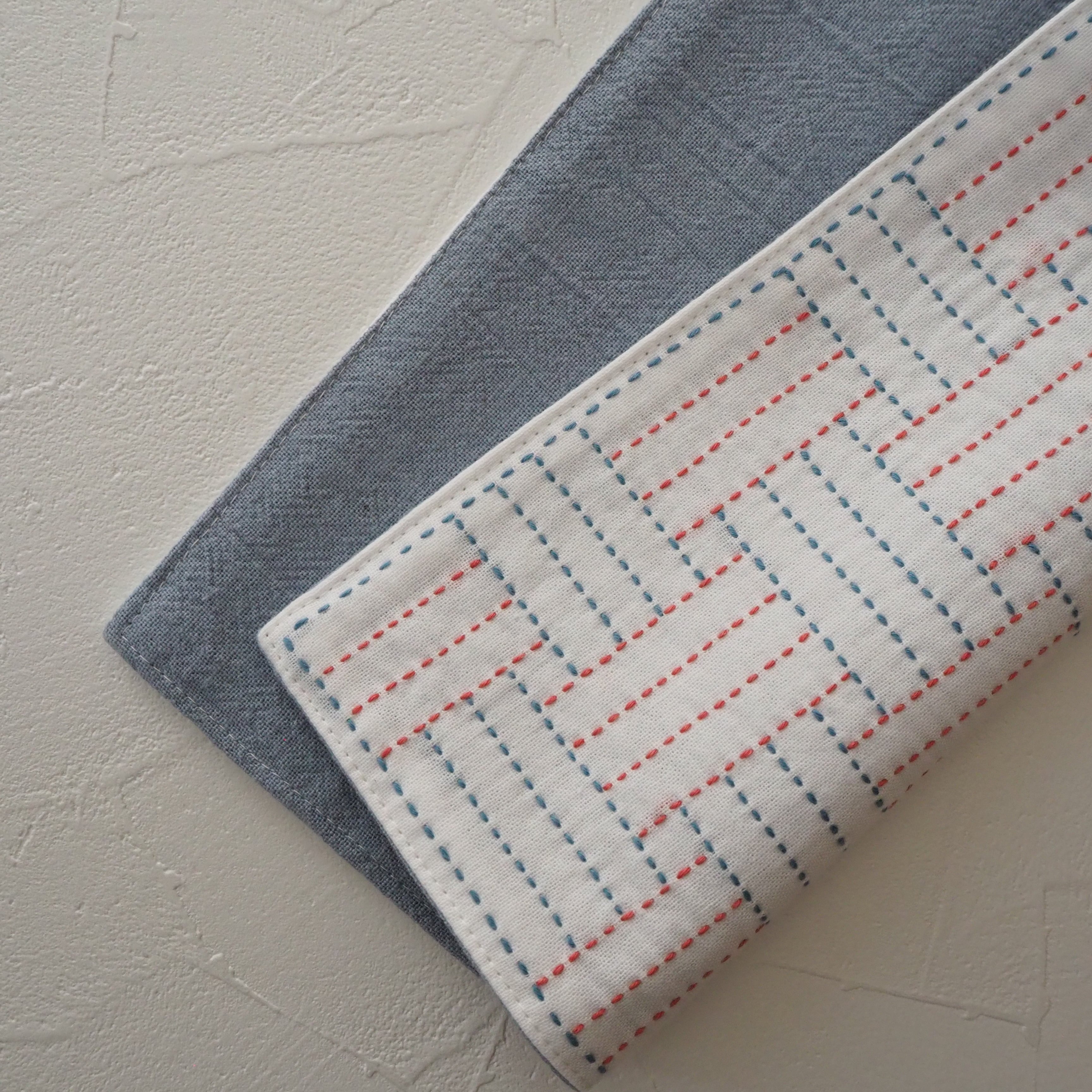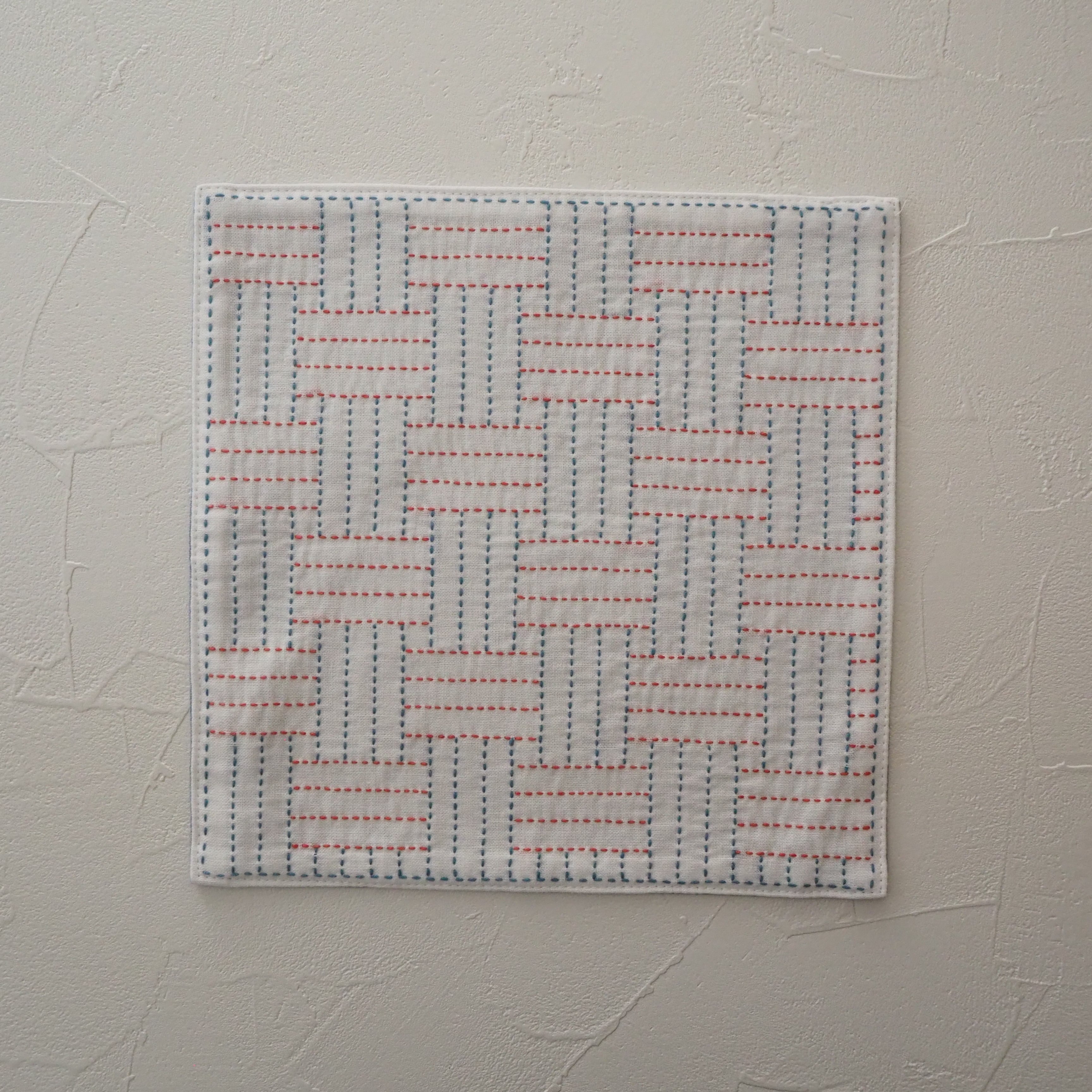 刺し子で算木くずし模様を施したハンカチです。