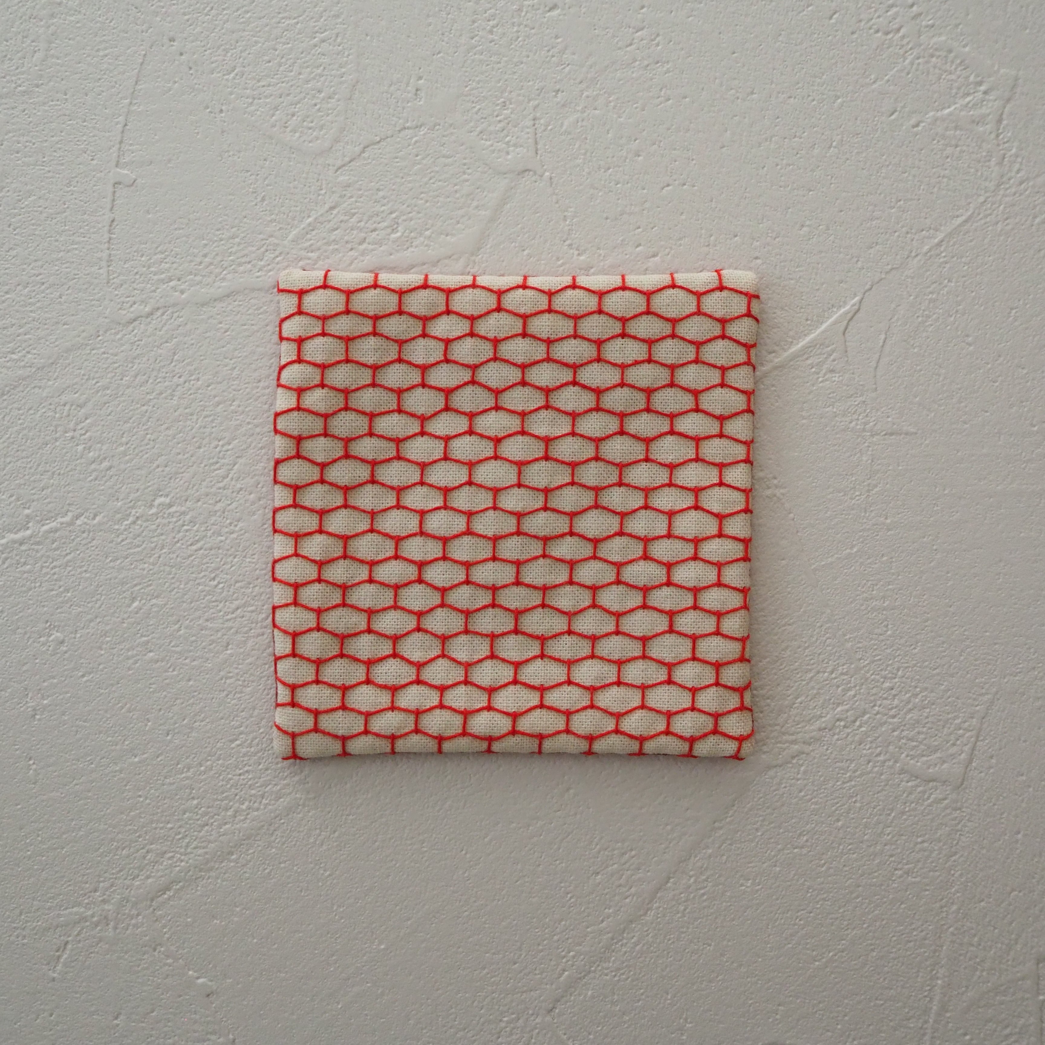 刺し子のコースター(かけ亀甲:小/朱)