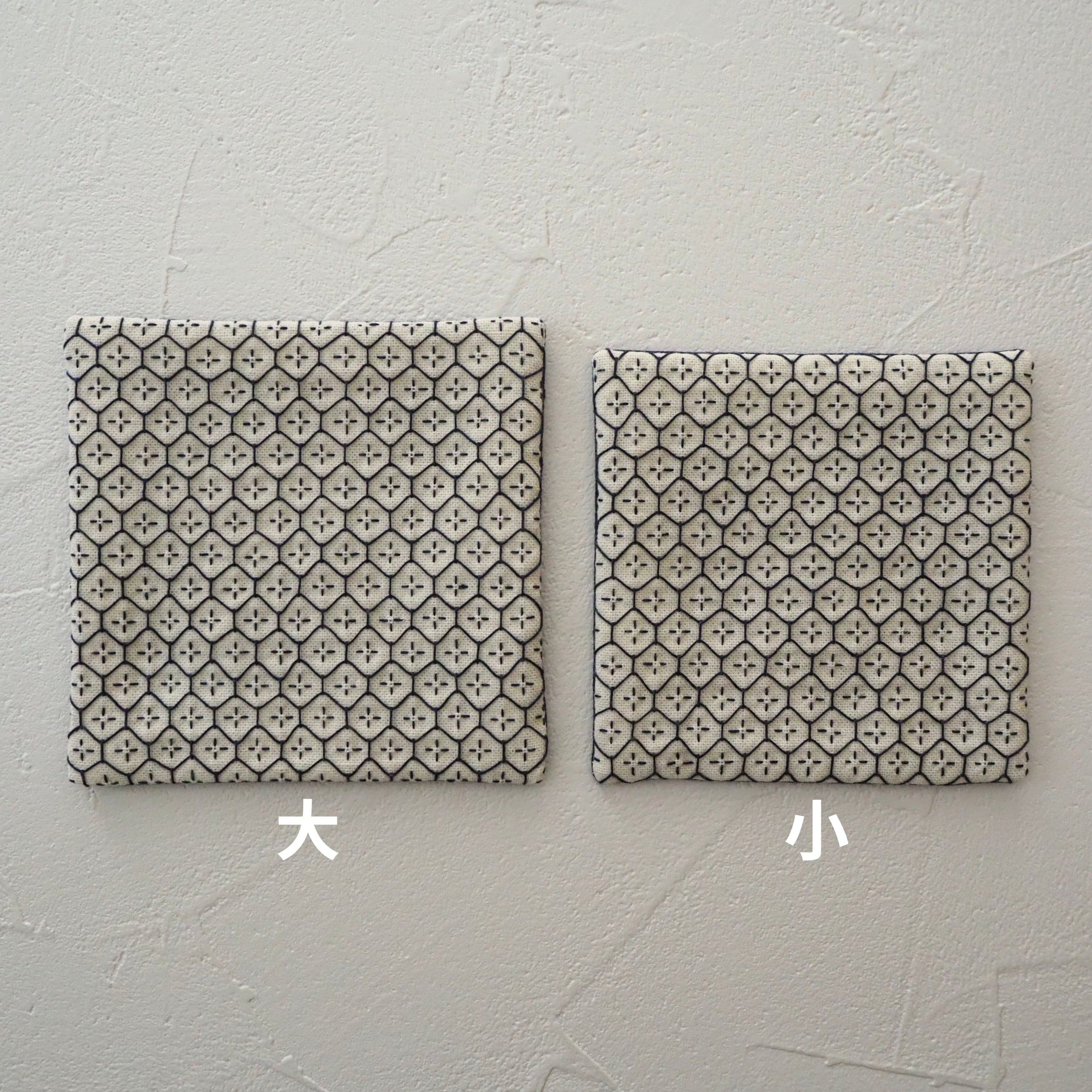 刺し子のくぐり刺し技法で亀甲花刺し模様を施したコースターです。