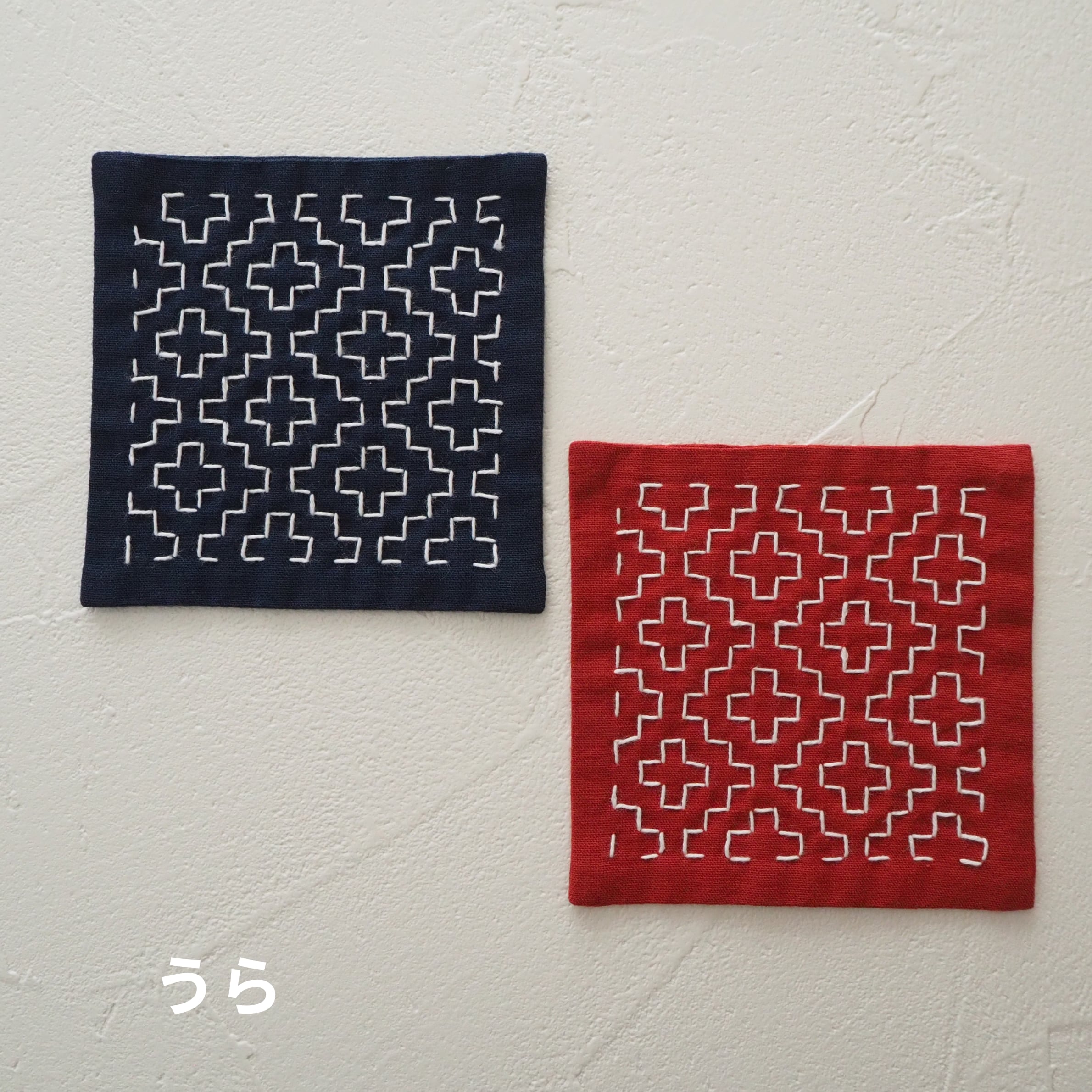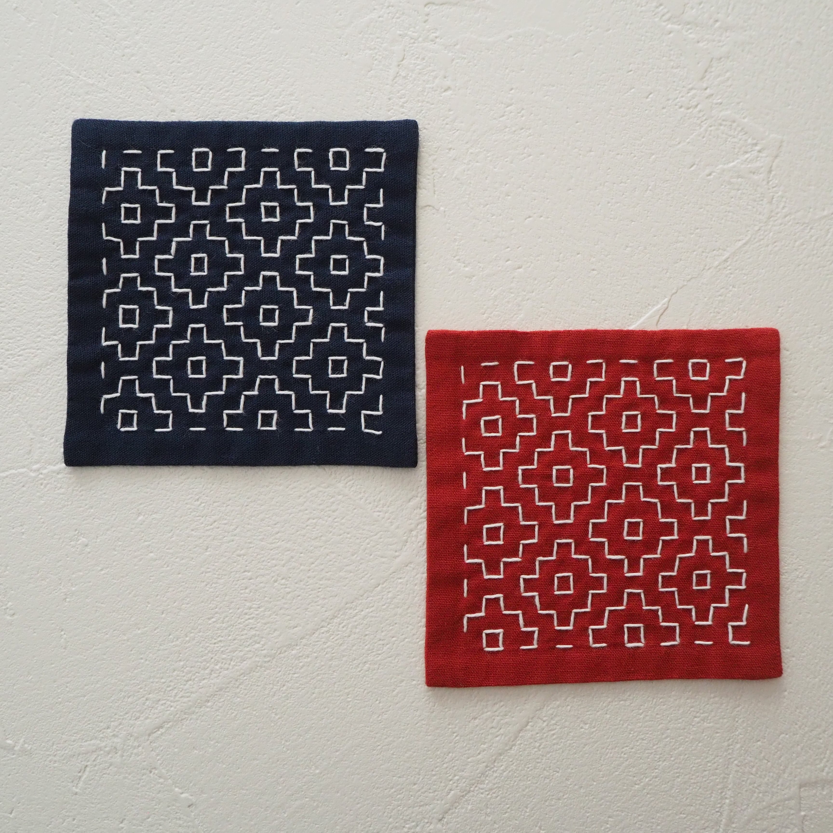 刺し子のコースター(柿の花/朱・紺セット)