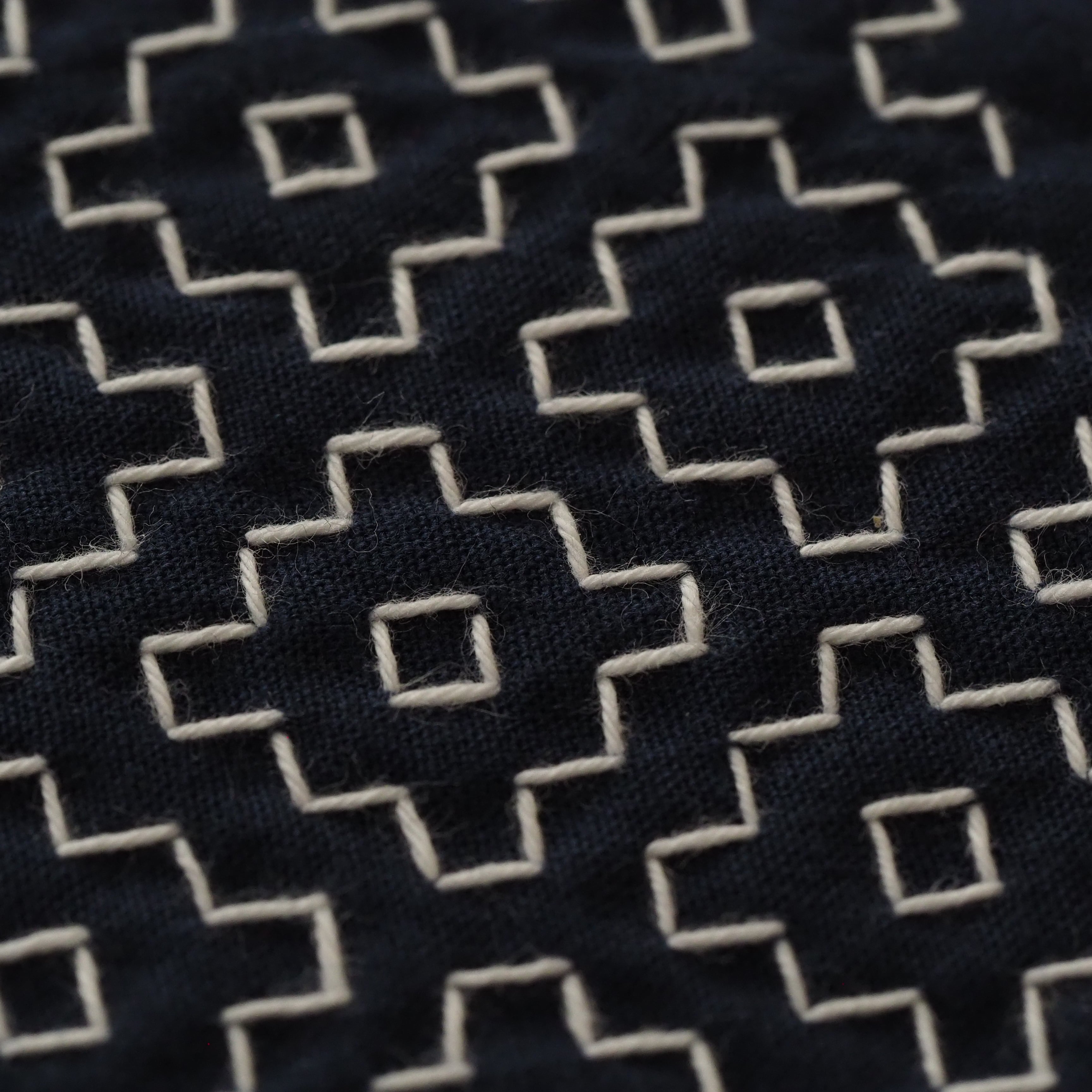 裏面にまで刺し子が行き渡った、総刺し仕立てのため、最初は少ししっかりした手触りがあります。