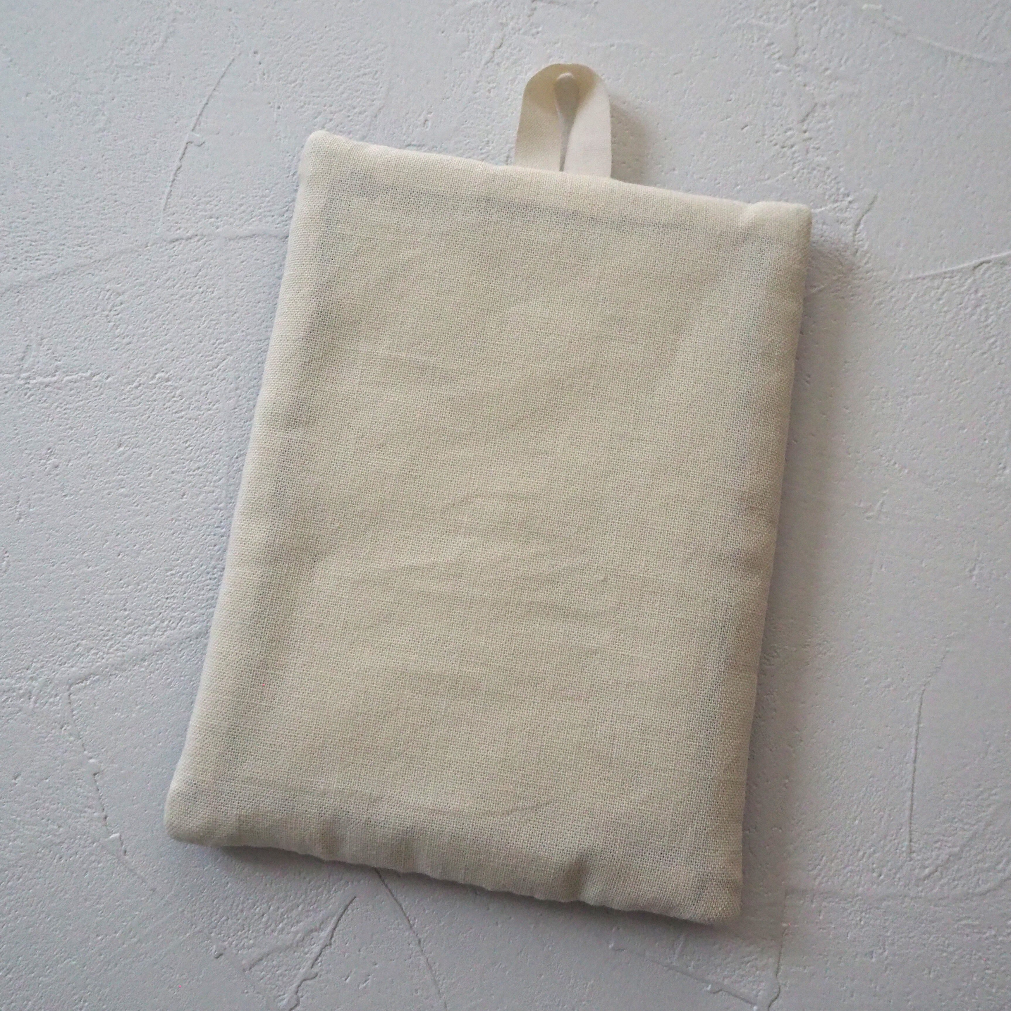 厚手の中綿を2枚重ね、模様側の布地には綿の接着芯を挟んでいるため、手に吸いつくような柔らかさに加え、ほどよい張りがあり、実用性に優れています。