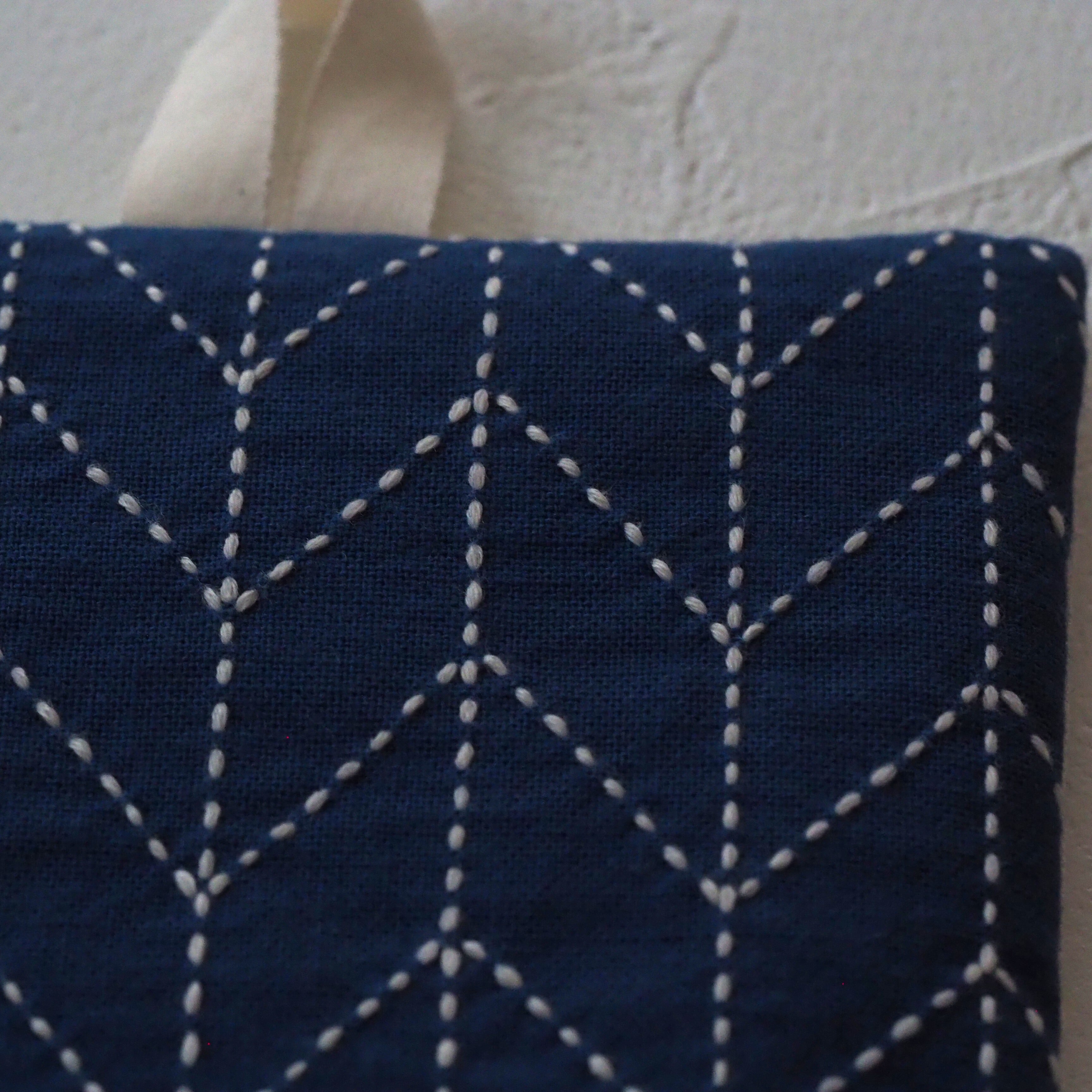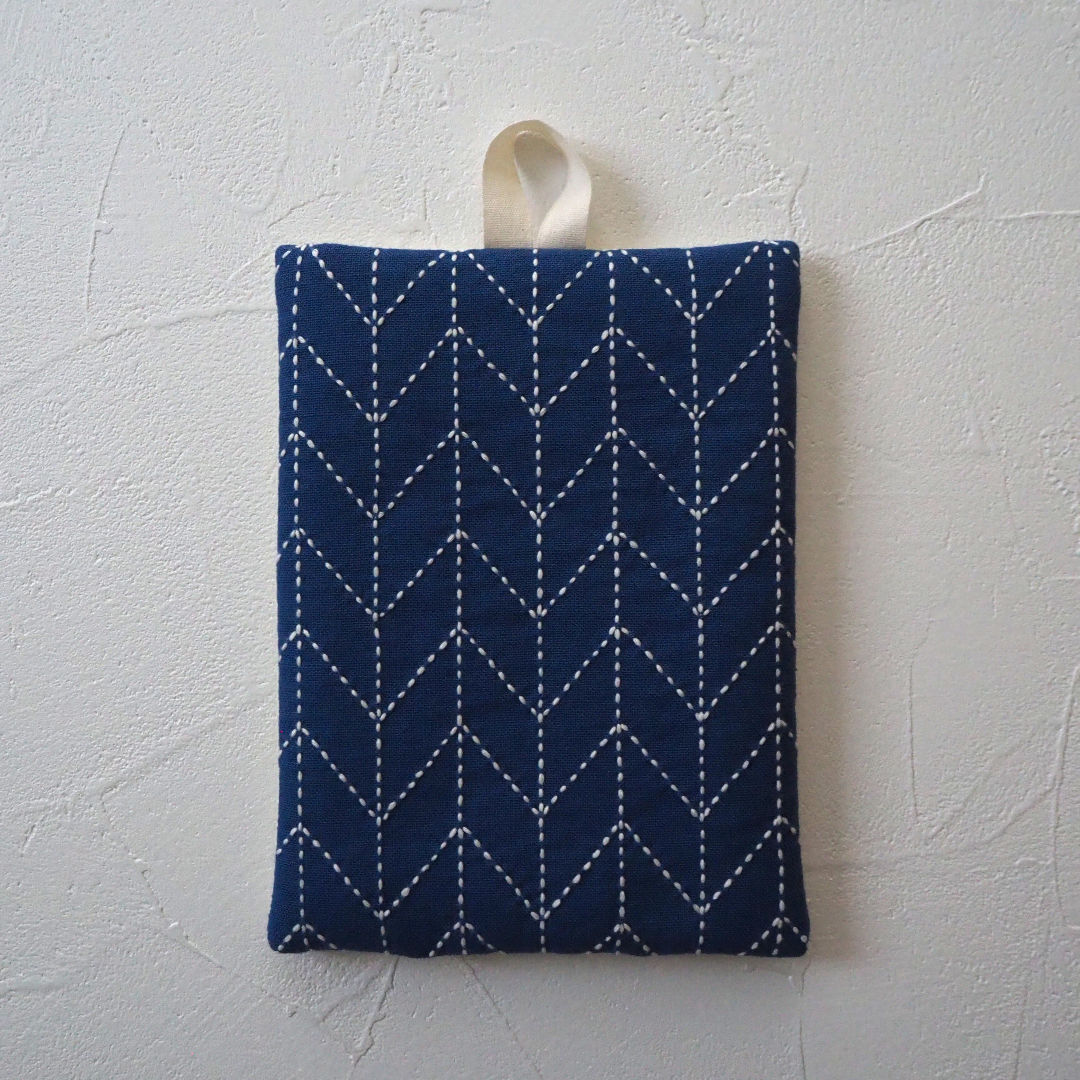 刺し子のなべつかみ(矢羽根:青)